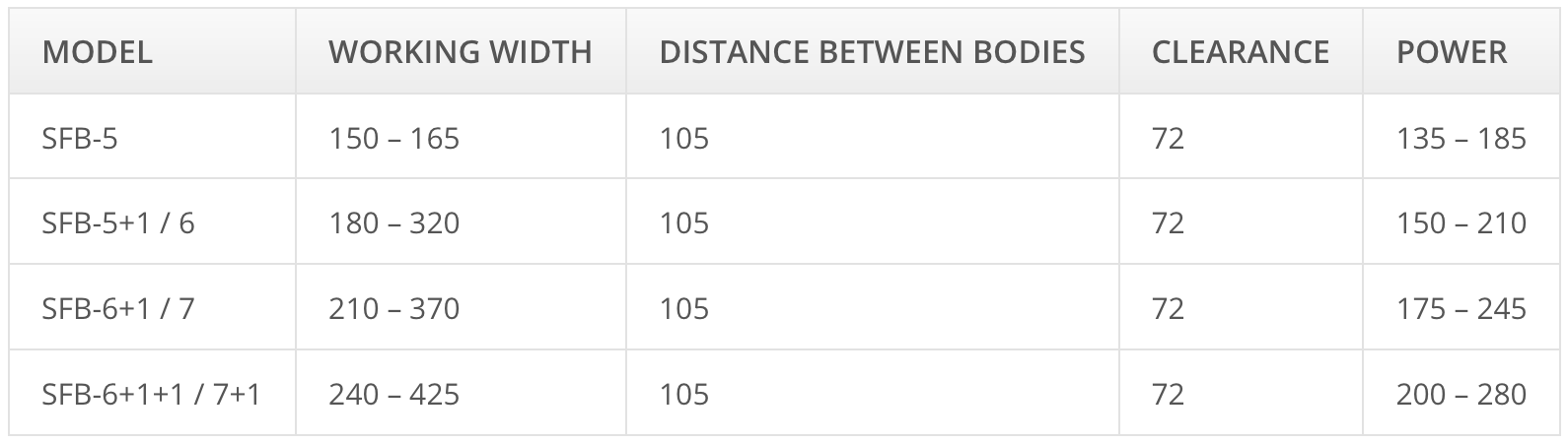 The SFB model is a mono-wheel conventional semimounted plough available in 5 to 8 body versions. Thanks to the Non Stop, 100% maintenance free security system, the SFB can adapt to any soil and condition.